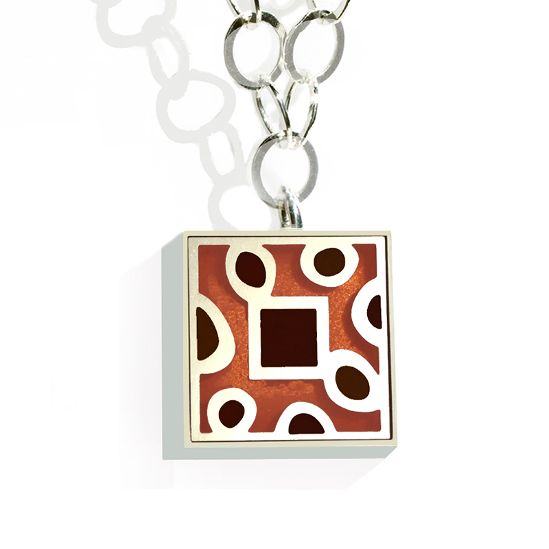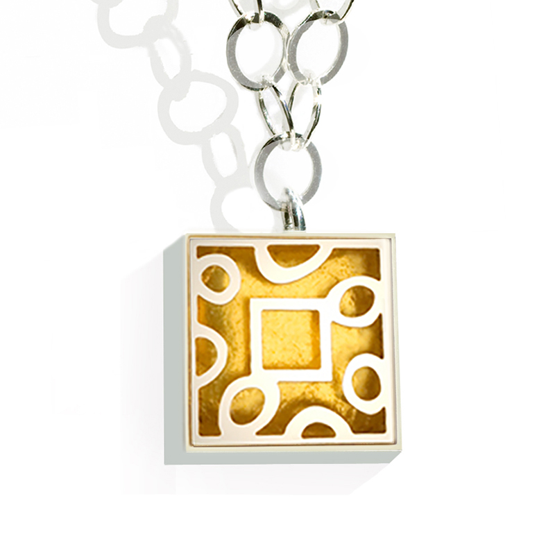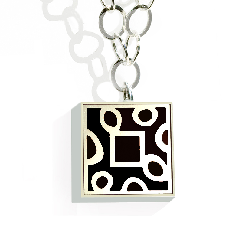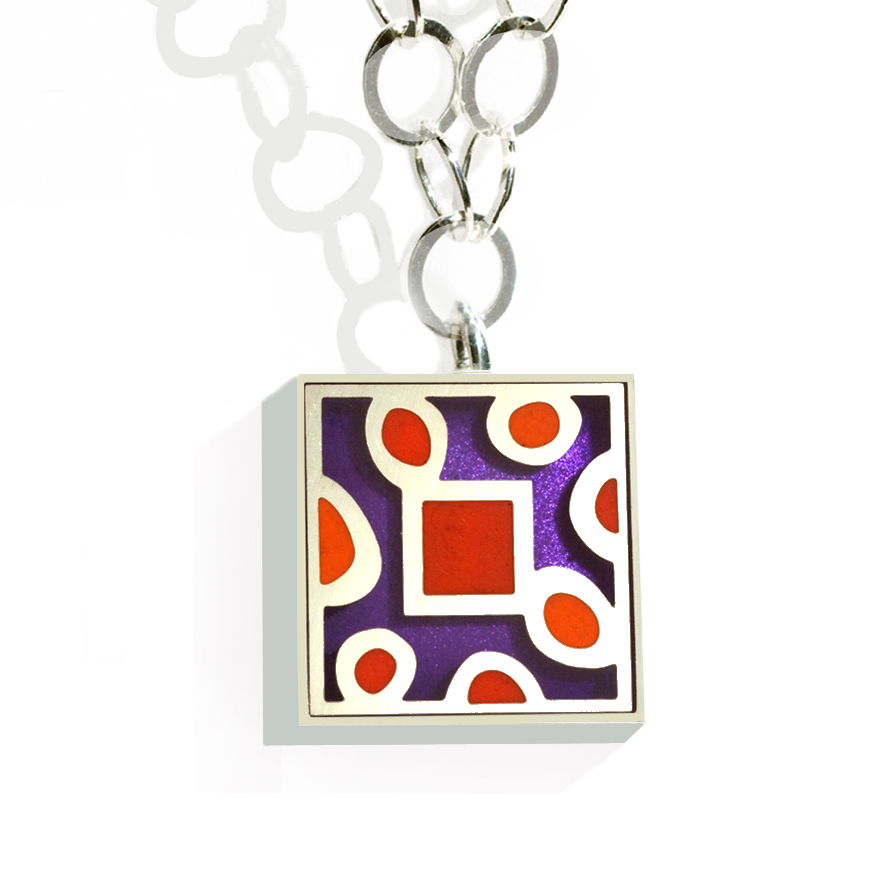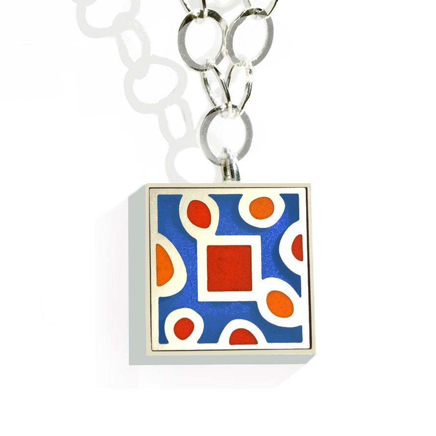 Medium square sterling silver Jeweled pendant on 19″ link chain. The chain can be shortened by simply closing the “lobster claw” catch on any link of the chain.