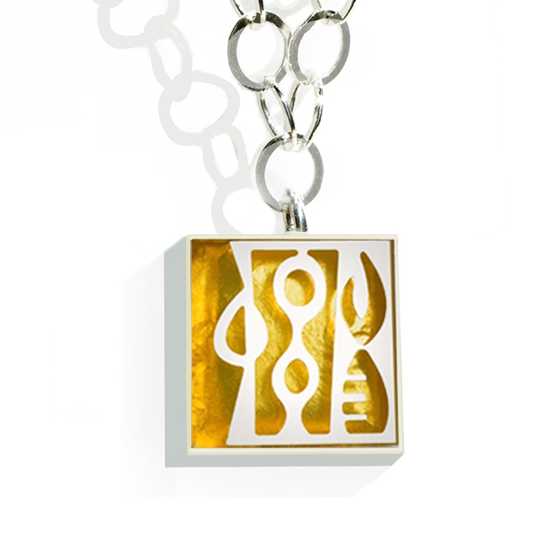 3268 R Medium Square Sterling Silver “Tribal” pendant