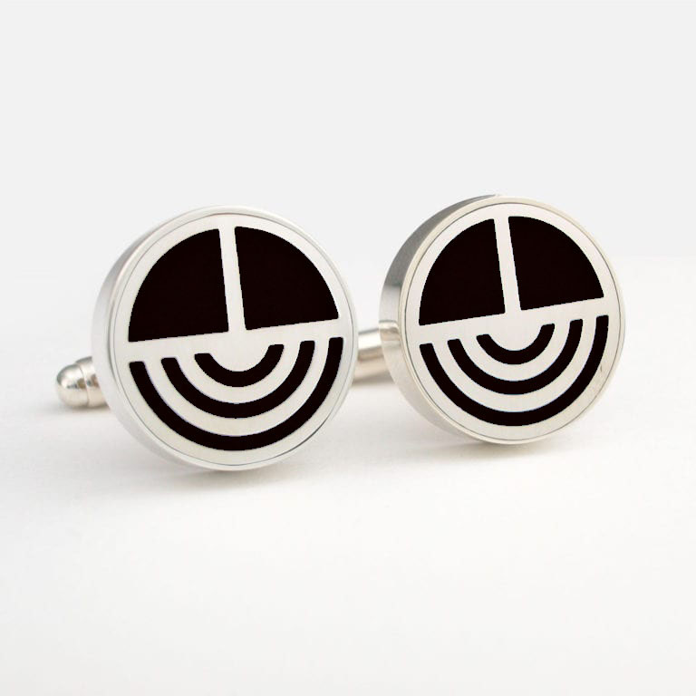 3292  Large Round Sterling Silver “Art Deco” cufflinks